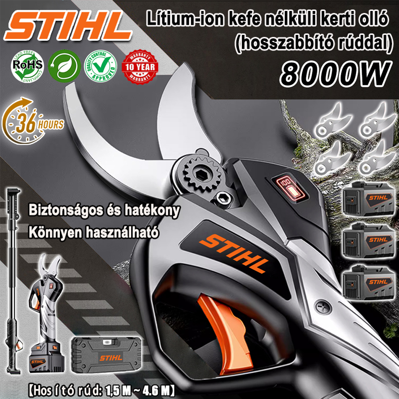 【STIHL】 8000 W kefe nélküli motoros lítium akkumulátoros teleszkópos metszőolló